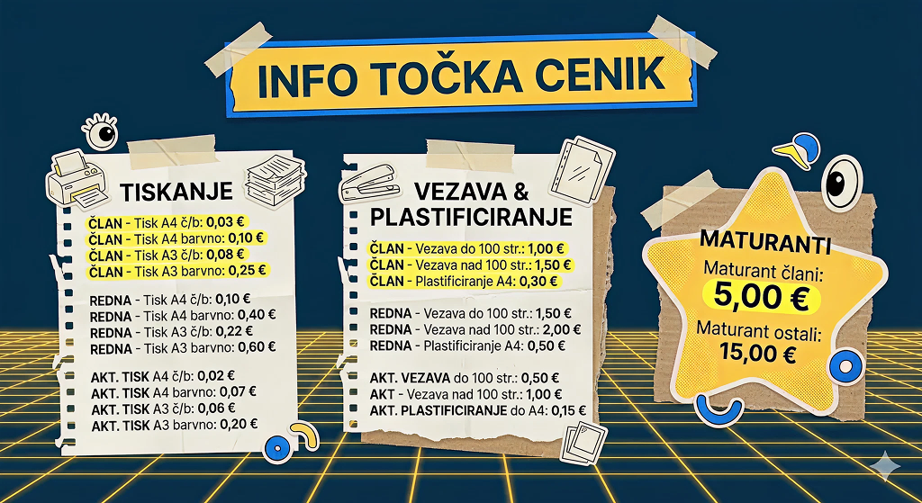 Včlaniš se lahko na KŠOK-ovi spletni strani ali na info točki v času uradnih ur.
