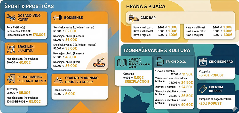 Za vnovčenje se najprej obrnite na info@ksok.si ali obiščite info točko v uradnih urah.